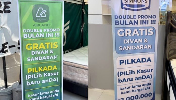 Di Bojong Gede Bogor lagi ada event menarik, kapan lagi beli kasur tapi bayarnya tuker tambah dijamin bakal untung banget karena kasur bekas kalian dihargain sampe dengan 2 juta loh! Event PILKADA ini menawarkan berbagai koleksi kasur dan springbed dari brand-brand ternama seperti Slumberland, Airland, Simmons, Elite, Serenity, Floresta, hingga Royal Foam yang dipakai di kasur-kasur hotel bintang 5.